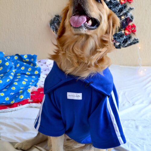 This royal blue sweatshirt features a high neckline, made with polar fleece. It also features buttons to convert it into