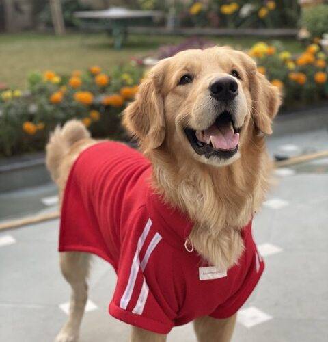 This red sweatshirt features a high neckline, made with polar fleece. It also features buttons to convert it into different